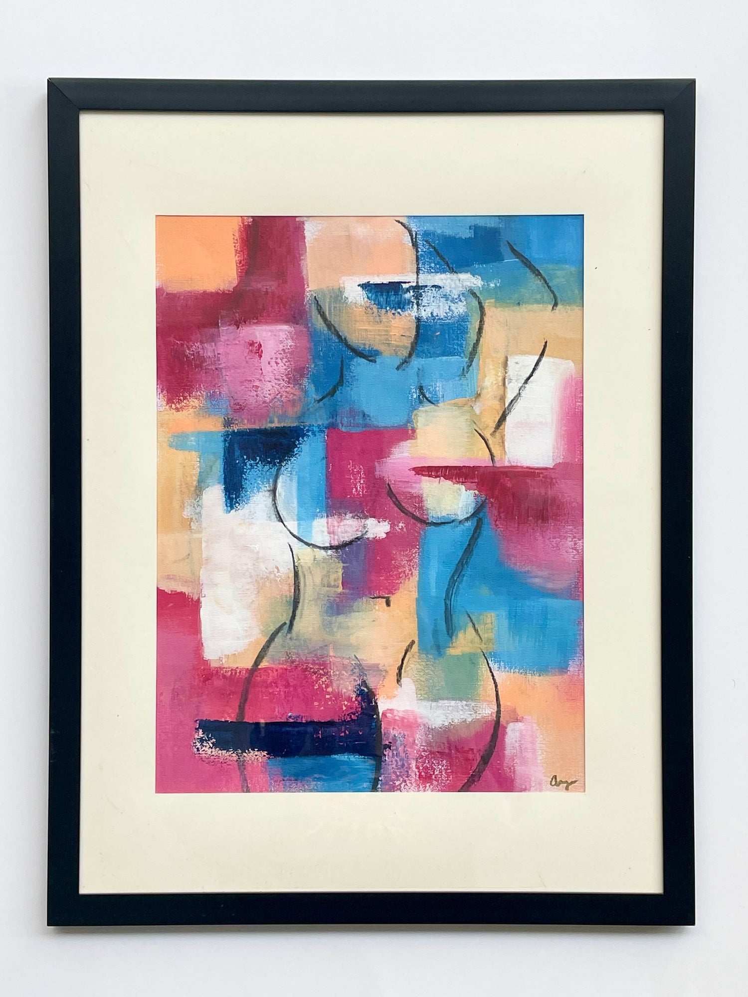 It is an acrylic painting on canvas paper. These pieces are perfect alone or as part of a gallery wall. This piece is framed.