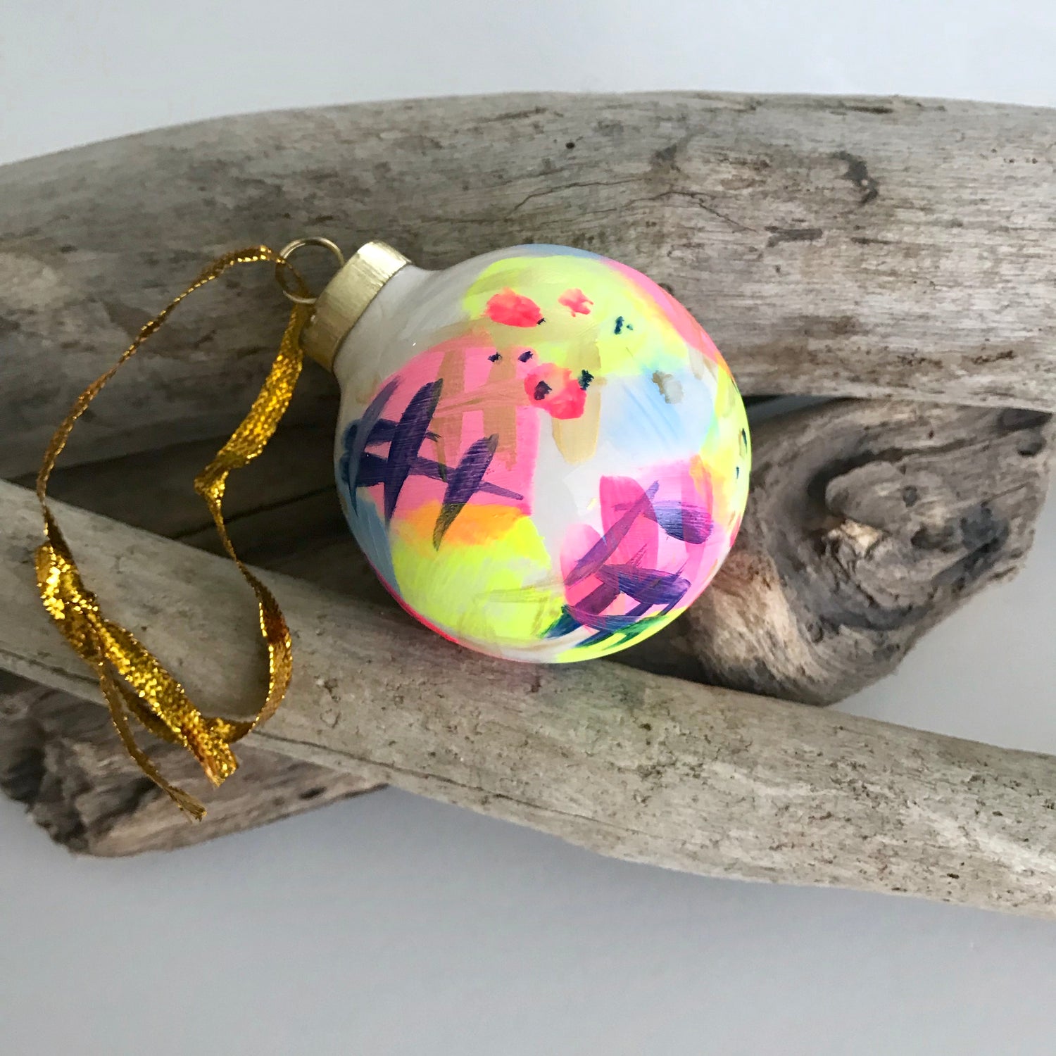 Adorn the holiday tree this year with a hand painted ceramic ornament. Each contains an original, unique design lovingly painted with acrylic and glazed for lasting beauty and signed by artist, Cory Hines.