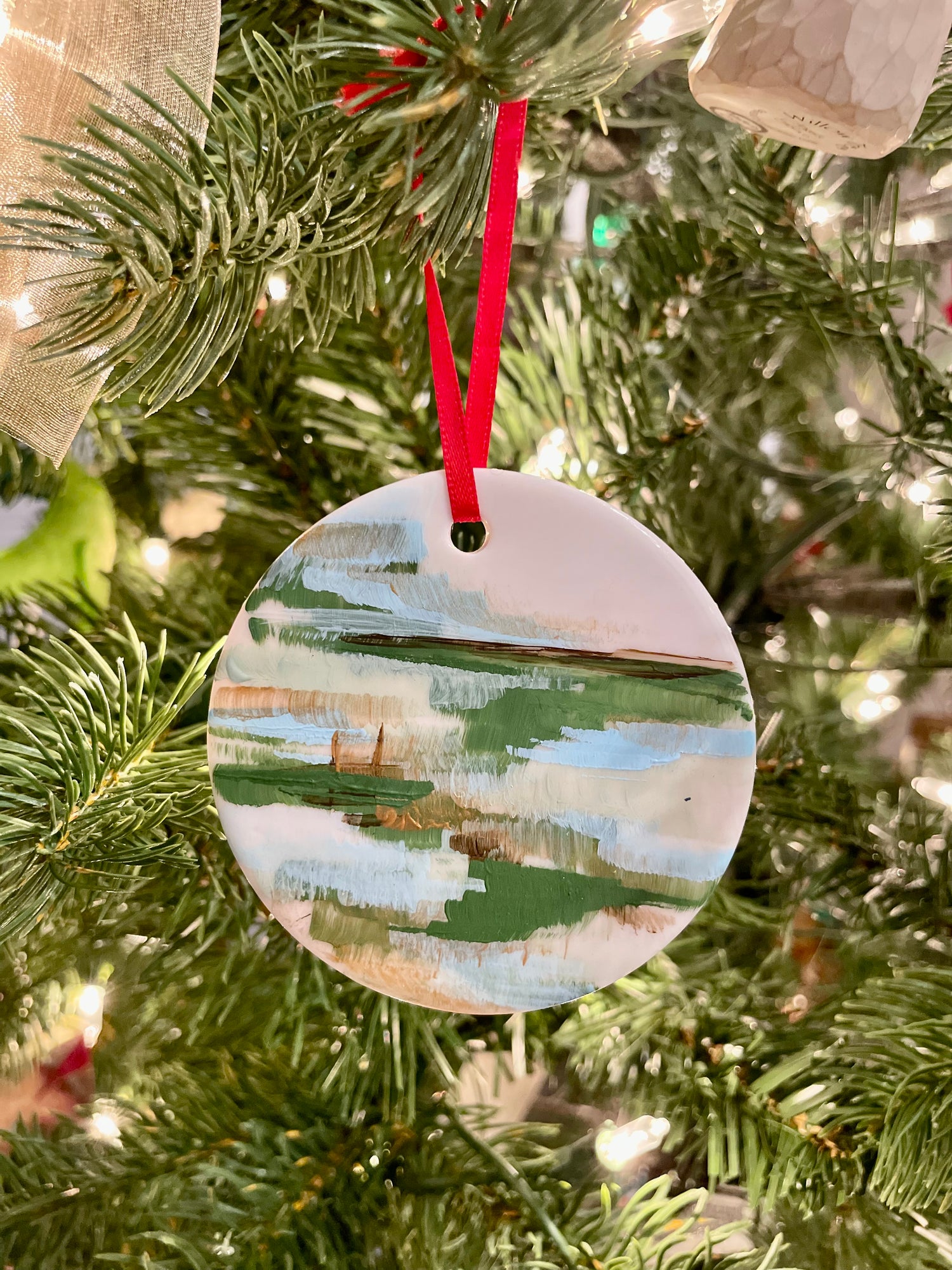 Adorn the holiday tree this year with a hand painted ceramic ornament. Each contains an original, unique design lovingly painted with acrylic and glazed for lasting beauty and signed by artist, Cory Hines.